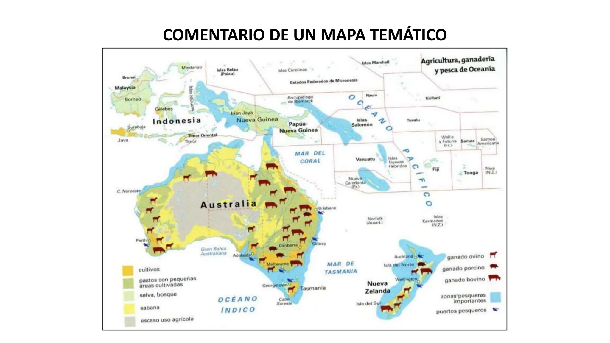 | Pacífico Sur | Pescado, copra, turismo | Asia, Australia, Nueva Zelanda |
